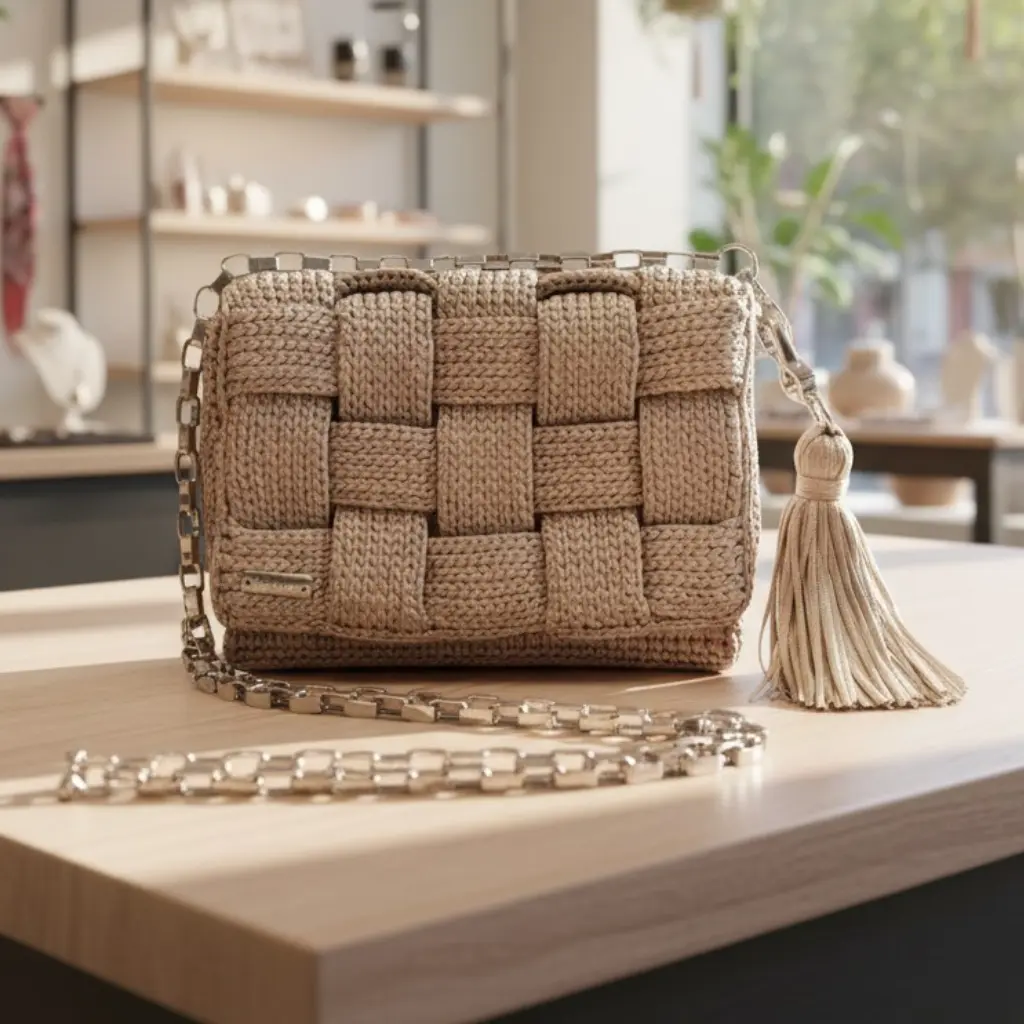 Cada bolso se crea de forma artesanal, cuidando la tensión del hilo y la forma final para que mantenga su estructura con el paso del tiempo. No hay producción en masa ni improvisación: solo oficio, criterio y decisión.